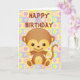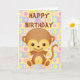 Cute Funky Pattern Monkey Design Birthday Card featuring a cartoon monky ina kawaii style with bright pastel colour background design