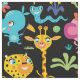 Cute and colourful African fun safari animals pattern nursery fabric for kids room decoration and craft works. Pattern include cute funny giraffe, zebra, tiger, lion, monkey, elephant, crocodile, snake, birds, lizard, etc.