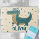 Personalised cartoon cute funny green baby alligator bath mat, perfect for nurseries and kids' rooms.