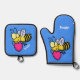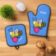 Cute funny bee with heart cartoon illustration oven mitt & pot holder set