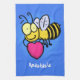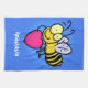 Cute funny bee with heart cartoon illustration tea towel