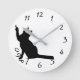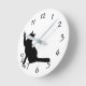 A fun clock showing off mischievous cat's nature. Silhouette of a black cat messing up numbers on your wall clock!