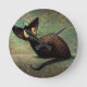 Cute Funny Black Oriental Cat Art Round Clock