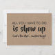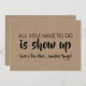 "ALL YOU HAVE TO DO IS SHOW UP (and a few other... smallish things)" "Will you be my Maid of honour?" Funny "Maid of honour", "Matron of honour" or "Bridesmaid" proposal cards.