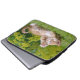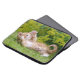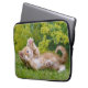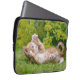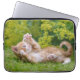 Cute funny cat kitten playing in a flowery garden laptop sleeve