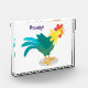 Cute funny crowing rooster cartoon illustration photo block
