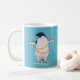 Fat penguin mug with a funny illustration - digital drawing of a cute Adelie penguin wrapping a sewing metre around its belly, preparing to go on a diet. Kind of a weight loss motivation, heh.
