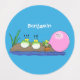 This funny design features 3 cute green frogs with one blowing bubblegum. All done in happy cartoon style! Fun from the pond!