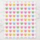 Fully customisable text. So you can personalise the message inside each heart and make each heart / message unique. 16 different hearts that make up the pattern. Assorted colours. 6 pink hearts, 2 orange hearts, 2 blue hearts, 2 green hearts, 2 purple hearts, 2 yellow hearts. With a blank white editable colour background where you can write a personal note.