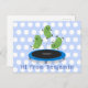 Cute funny green beans on trampoline cartoon postcard