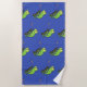 Cute funny green happy chameleon lizard cartoon beach towel