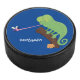 Cute funny green happy chameleon lizard cartoon hockey puck