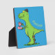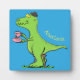 Cute funny green t rex dinosaur cartoon plaque