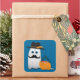 Cool and adorable Halloween ghost with moustache cover so you can't recognise him. He is wearing black hat with orange feather and he carries a pumpkin bag full of candies from trick or treating. Customisable blue sticker colour.