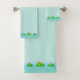 Cute Funny Happy Frogs on Light Blue Bath Towel Set. Frogs only on the lower side.