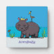 Cute funny hippopotamus with bird cartoon plaque