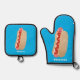 Cute funny hot dog Weiner cartoon Oven Mitt & Pot Holder Set