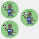 This happy Komodo dragon is playing soccer! Drawn in fun cartoon style.