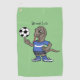 Cute funny Komodo dragon playing soccer cartoon Golf Towel