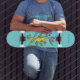 Cute funny leafy sea dragon cartoon illustration skateboard