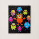 Cute Funny Monster Party Creatures in Circle Jigsaw Puzzle