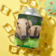 Add a touch of whimsy to toasts and celebrations with this funny can cooler, which features AI-generated artwork of a mother capybara and one of her offspring indulging in a siesta in the sunlit grass by a river. Reverse shows identical design.