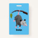 Cute funny opossum hanging from branch cartoon ID badge