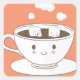 Cute funny sugar cubes bathing in coffee cup square sticker