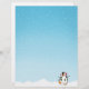 A cute winter illustration: a penguin with gloves and earflap in a good mood is walking in the snow.
