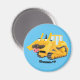 This funny yellow bulldozer eats dirt! Drawn in happy cartoon illustration style with tongue and eyes to create a cute character for the budding construction worker!