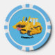 This funny yellow bulldozer eats dirt! Drawn in happy cartoon illustration style with tongue and eyes to create a cute character for the budding construction worker!