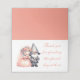 Show your appreciation with this adorable gnome wedding thank-you place card, featuring a whimsical watercolor illustration of a cheerful gnome bride and groom. The bride looks stunning in a flowing gown adorned with soft orange hues and a floral crown, while the groom appears dapper in a grey suit and his signature pointed hat. This enchanting design is perfect for rustic, bohemian, woodland, or fairy tale-themed weddings.