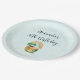 Paper plates with an adorable illustration featuring a smiling green and gold pot with a cute rainbow,