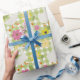 This charming wrapping paper features adorable geese surrounded by hand-drawn flowers, set against a classic green gingham check background. A perfect blend of country charm and playful whimsy, ideal for adding a cheerful touch to any gift!
