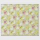 Cute Geese With Hand Drawn Flowers - Green Check Wrapping Paper