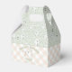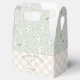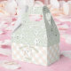 This is an adorable, gender neutral Halloween green & orange 1st Birthday Favour Box. The background features a cute hand-drawn pattern of ghosts, bats, stars and moons on a pastel green background. The front and back feature a cute ghost on a orange & green gingham pattern personalised with name and date.