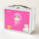 Cute genie, magic lamp, cat & stars on pink metal lunch box