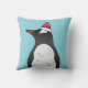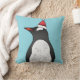 Cute Gentoo Penguin Wearing A Santa Hat On Blue Cushion