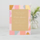 Celebrate a special mum-to-be with these vibrant and stylish baby shower invitations! The design features a modern geometric pattern in soft blush pink, muted teal, warm mustard, and peachy tones, creating a cheerful and contemporary look perfect for any baby shower theme. The centre panel elegantly frames the customisable event details with clean and minimalist typography, ensuring all the important information is easy to read. Whether hosting a garden party, an intimate indoor gathering, or a chic brunch, these invitations set the perfect tone for a warm and memorable celebration. Available as a downloadable file for instant convenience or as professionally printed cards for a polished and lasting keepsake, these invitations are a beautiful way to honour the mum-to-be.