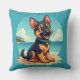 Cute German Shepherd Puppy Beach Illustration Cushion