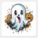 Cute Ghost and Happy Pumpkins Square Sticker