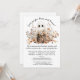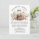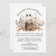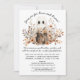 This Halloween invitation radiates playful charm with a dash of spooky sophistication. At its heart is a sweet ghost character—black-eyed and gently smiling—cradling a tiny pumpkin. Surrounding it is a lush wreath of autumnal florals and foliage in warm tones of orange, cream, and brown, striking a balance between eerie and elegant. . . .