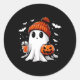 Cute Ghost Drinking Coffee Halloween Ghost Coffee Classic Round Sticker