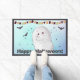 Welcome guests with spooky-cute style! This Halloween doormat features an adorable smiling ghost, festive bunting, and “Happy Halloween” text with bats flying above. A fun and family-friendly way to decorate your front porch, entryway, or indoor space for the season.