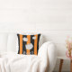 Add some festive fun to your Halloween décor with this reversible throw pillow, featuring three cute cartoon ghosts who say "boo!". With a bright and modern orange and black stripe background, this pillow is sure to add cheer to your holiday home or Halloween entertaining. May be personalised with your own text, if you wish. Pillow back is solid black. Happy Halloween!
