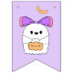 Make your child's halloween party unforgettable with these adorable coquette ghost Halloween themed bunting banner flags. Features a coquette ghost holding a pumpkin, and a colourful bat. It’s time for a spooky sweet halloween celebration! All elements are editable. You can personalise this design by clicking on "Personalise this template" or if you wish to change the font, colours or arrange the design elements in a different way you can click on "Edit using Design Tool".
