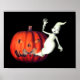 Cute ghost coming out of a scary looking Jack O Lantern. Halloween design by Susan.