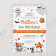Create a spooktacular party with with this cute Cute Ghost Kids Boys Halloween Birthday Party invitation! With the perfect combination of graphics including a moon, witch hat, spider and spiderweb, ghosts, pumpkins and a cauldron with Halloween candy and stars! Personalise your party invitations in minutes. Contact us to request coordinating party supplies and stationery.
