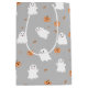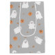 Cute Ghost & Pumpkin Grey Halloween Pattern Medium Gift Bag