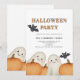 Cute ghost pumpkin Halloween party invitation. Easy to change the text. Fun Halloween design. The text Halloween party is in orange and black. The ghosts, pumpkins and bat are on the front and back. Cute design for a kid's party.